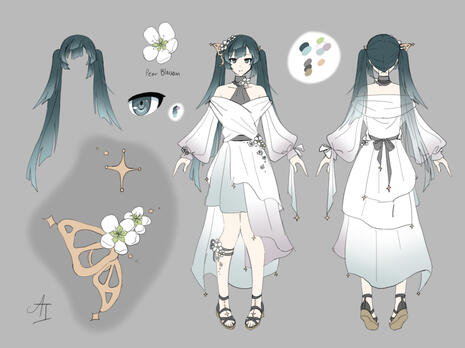 I offer two types of character design commissions: redesigns or designs from scratch. You must own the original character if you commission a redesign.Each piece comes with flat colors and any additional drawings to clarify details as needed. Default background is grey, but you may ask for a different color.The process is as follows: compiling ideas, design brainstorming, color testing, and final drawing. Each stage allows up to 2 major revisions. Design brainstorming and color testing will include 3 options to choose from, and each revision will include 3 more.If you add the back view add-on, only the front view will be designed initially and the back view will have its own design brainstorming and color testing stages. The prop add-on will follow a similar process for each prop (max 3 props).If I accept your commission, please DM me via Discord or Twitter (X) (links found below) so we can more efficiently work together (I am more active on Discord).